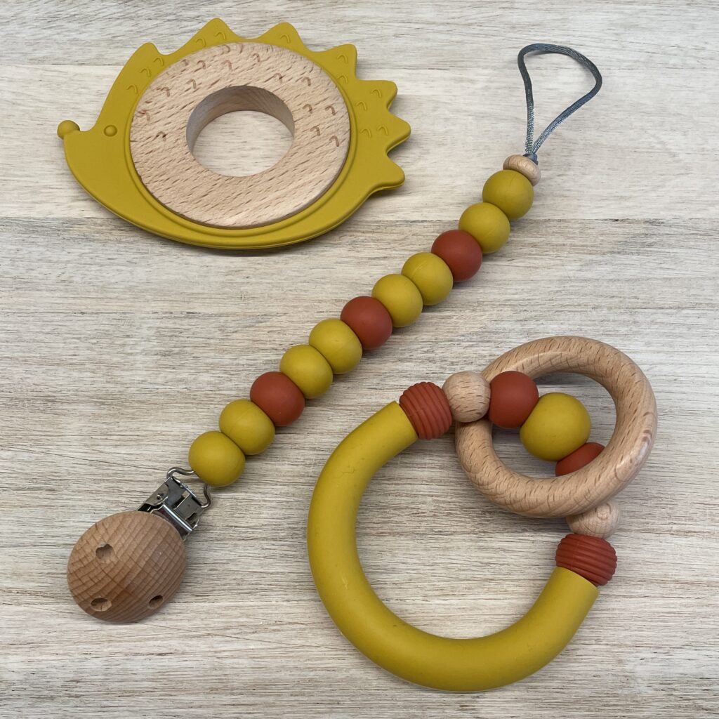 Voor baby’tjes vond ik dat zelf altijd mega moeilijk, tot ik zelf een baby kreeg en enkele jaren later babyspulletjes begon te maken. Ik had toen een veel beter idee van wat leuk én nuttig zou zijn. Zo kwam ik op het idee om onze cadeausetjes te maken: een setje met hierin een speenkoord, een bijtspeeltje/rammelaar en een bijtfiguur naar keuze. De speenkoord kan gebruikt worden om het tutje aan te hangen, maar ook om een knuffel of bijtspeeltje aan te hangen. Dus ook heel handig voor baby’s die geen tutje nemen! De bijtspeeltjes zijn sowieso super handig, want elke baby komt op een bepaald moment in die mega vervelende fase van tandjes krijgen. Ze bijten dan echt op alles, maar een bijtspeeltje is dan wel veel beter dan jouw vingers, toch?