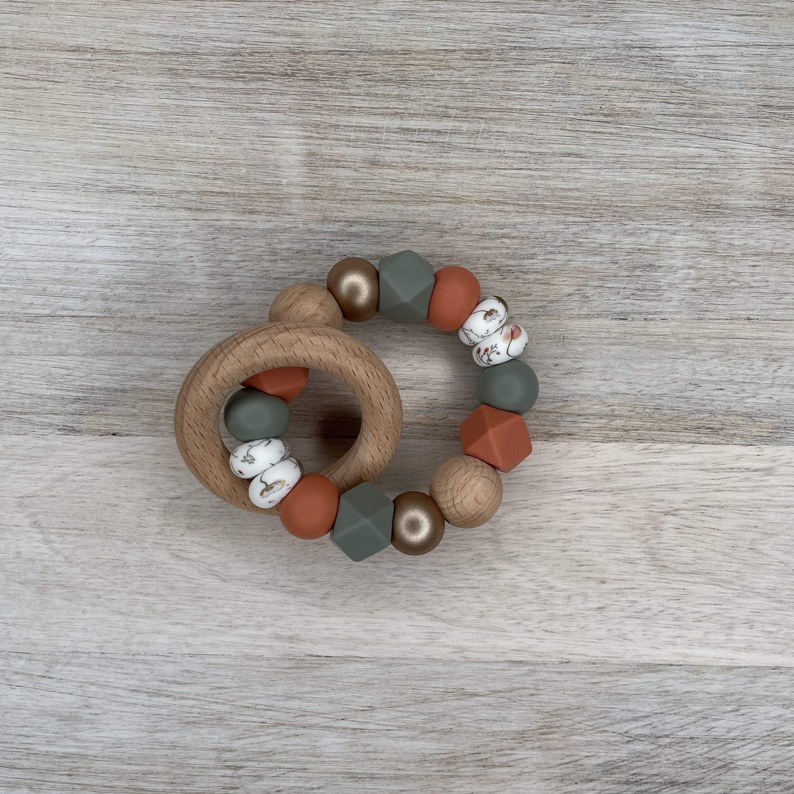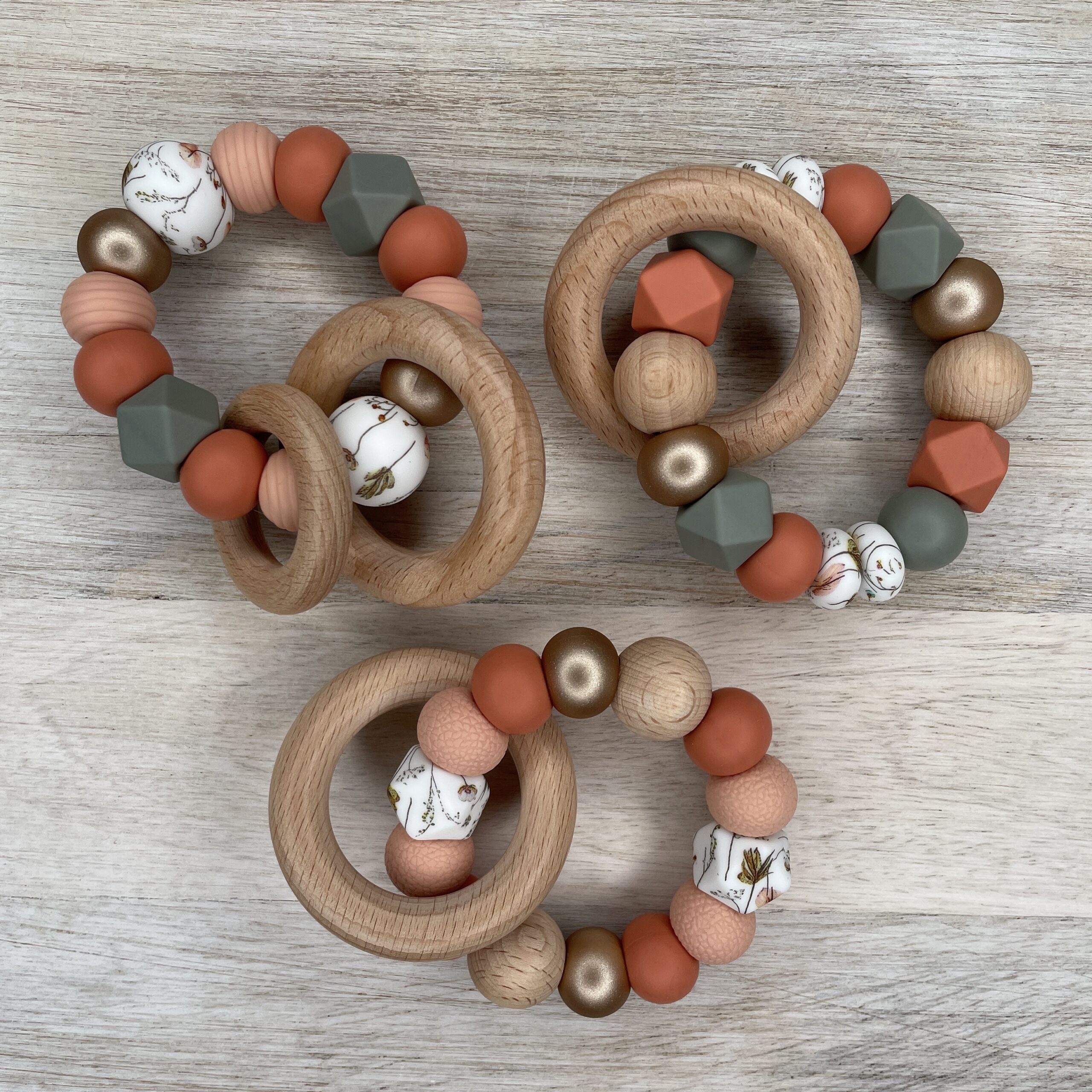 - De siliconen kralen zijn 100% veilig gekeurd en zijn vrij van BPA, PVC, lood en ftalaat. De houten kralen en ringen zijn gemaakt van onbehandeld beukenhout.